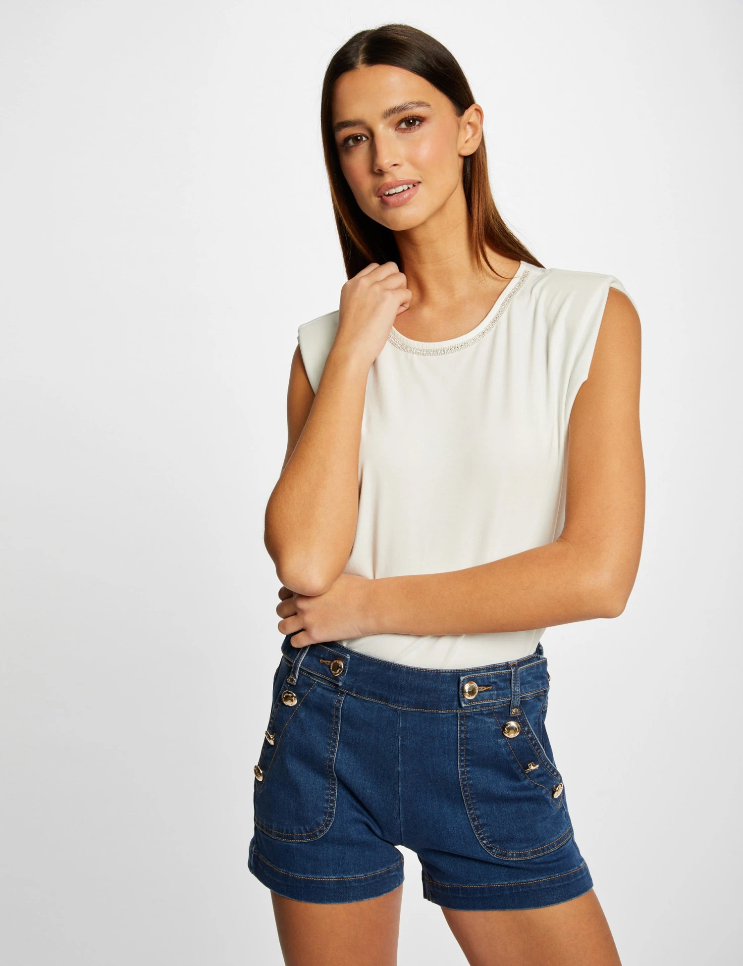 Débardeur Bretelles Larges à épaulettes Ecru Femme