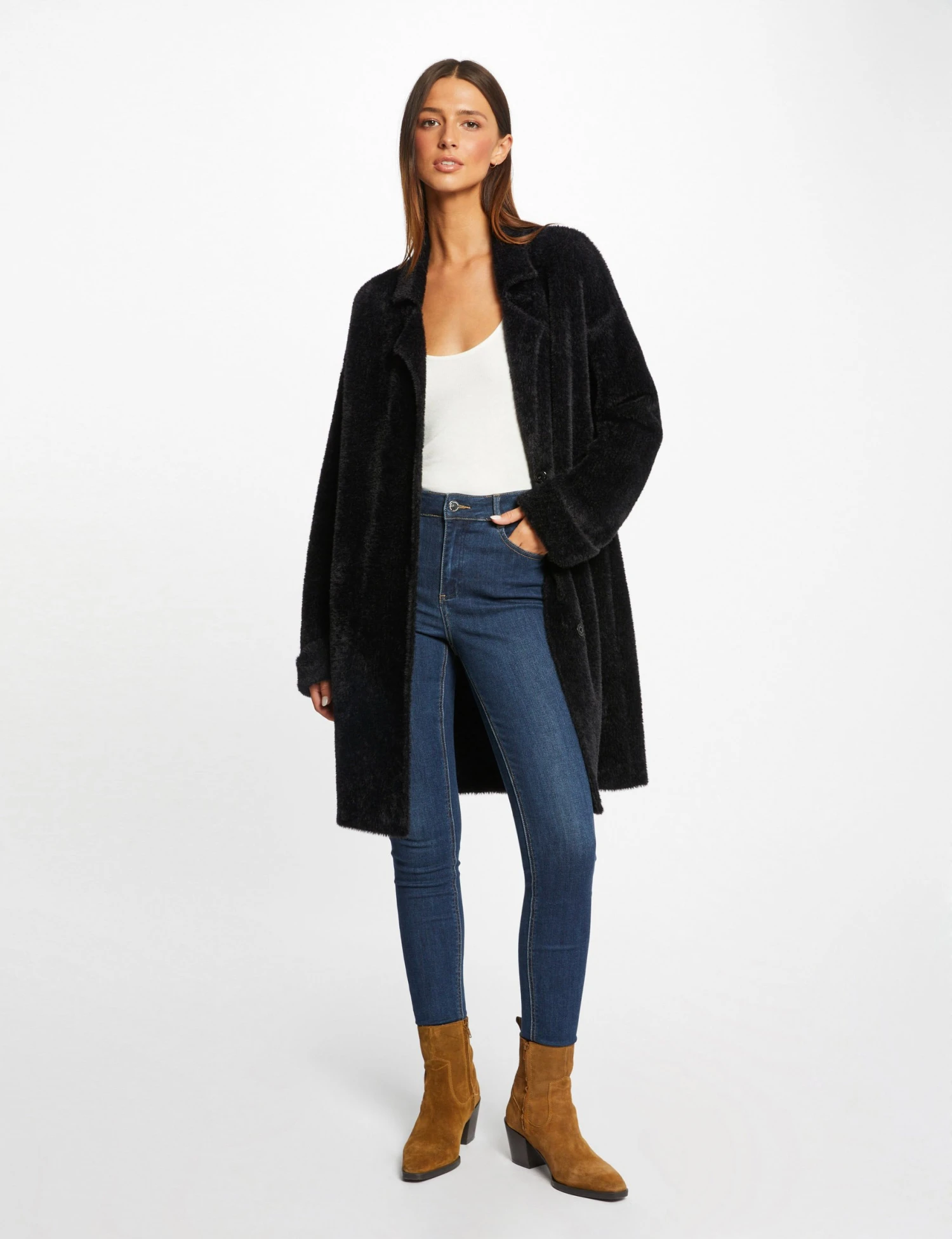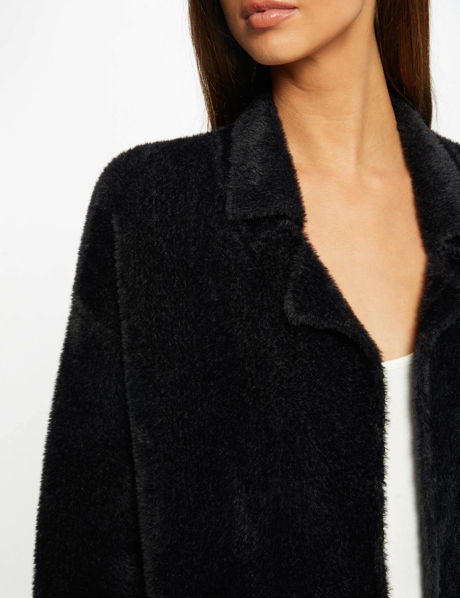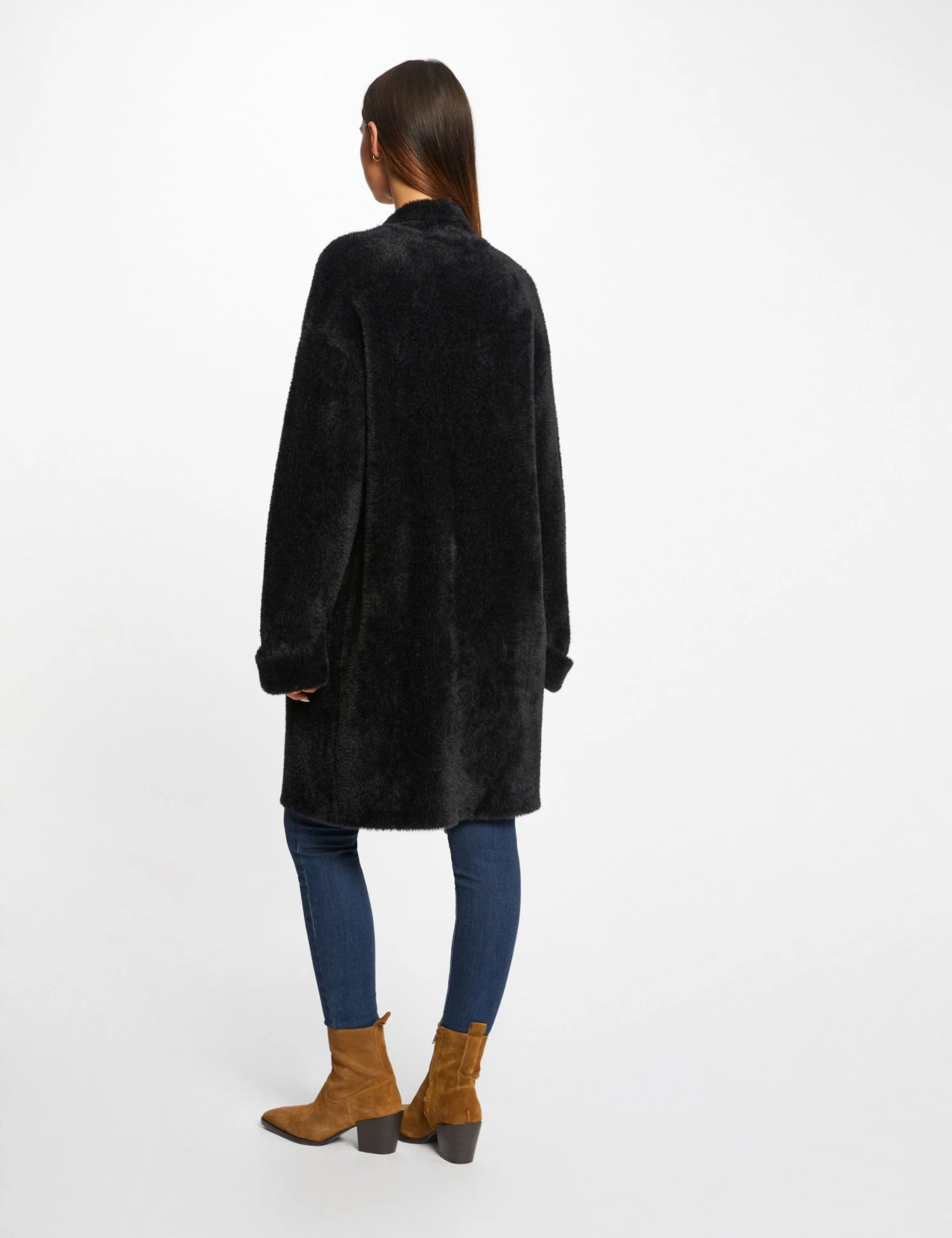 - Gilet long droit maille duveteuse