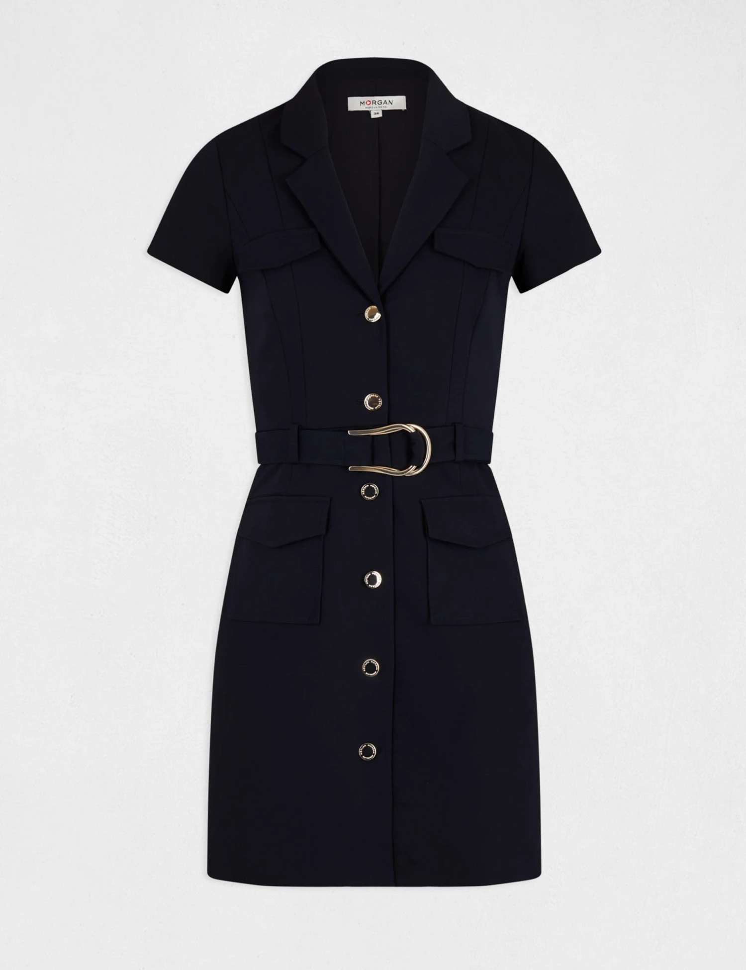 - Robe droite boutonnée ceinturée