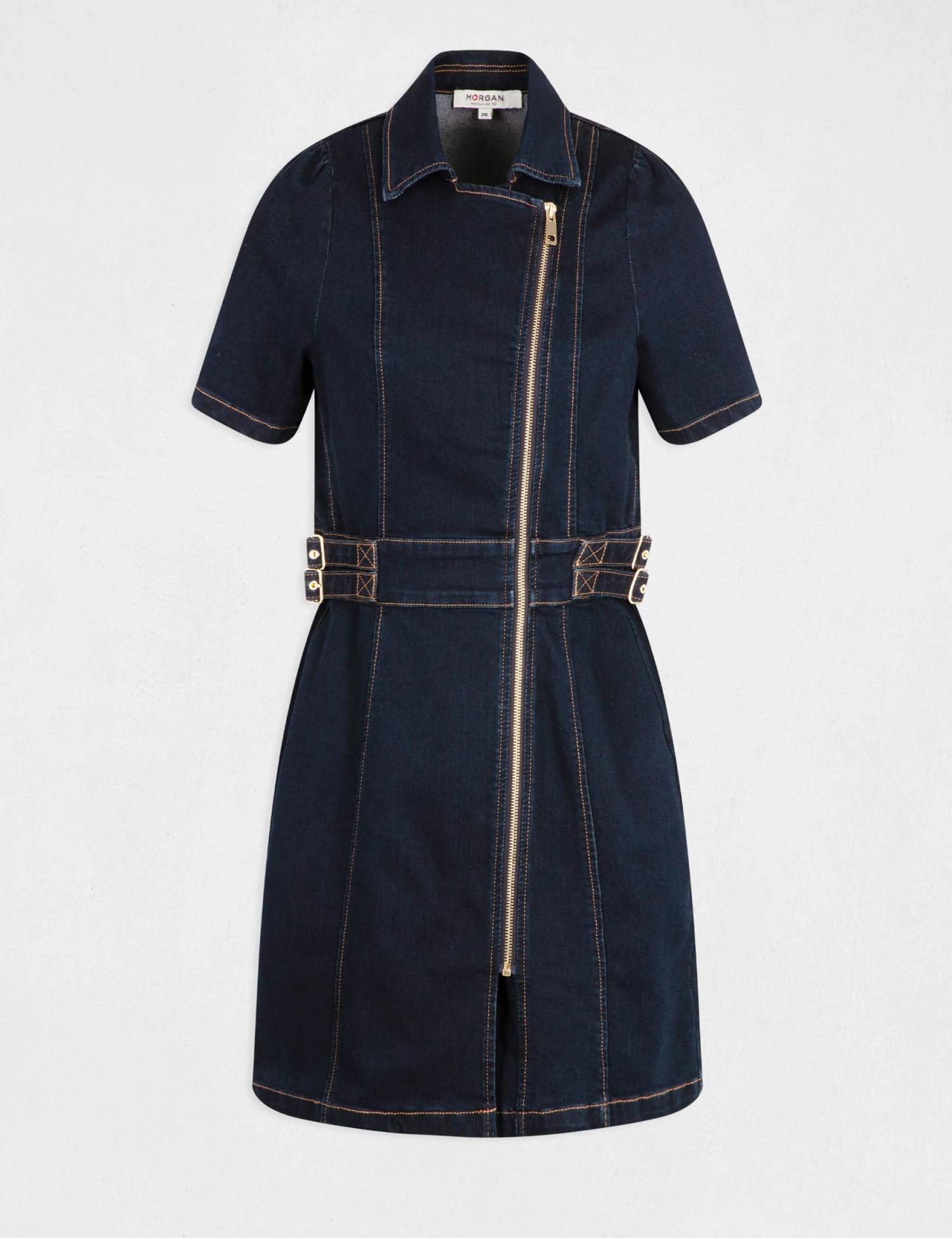 - Robe droite zippée en jean