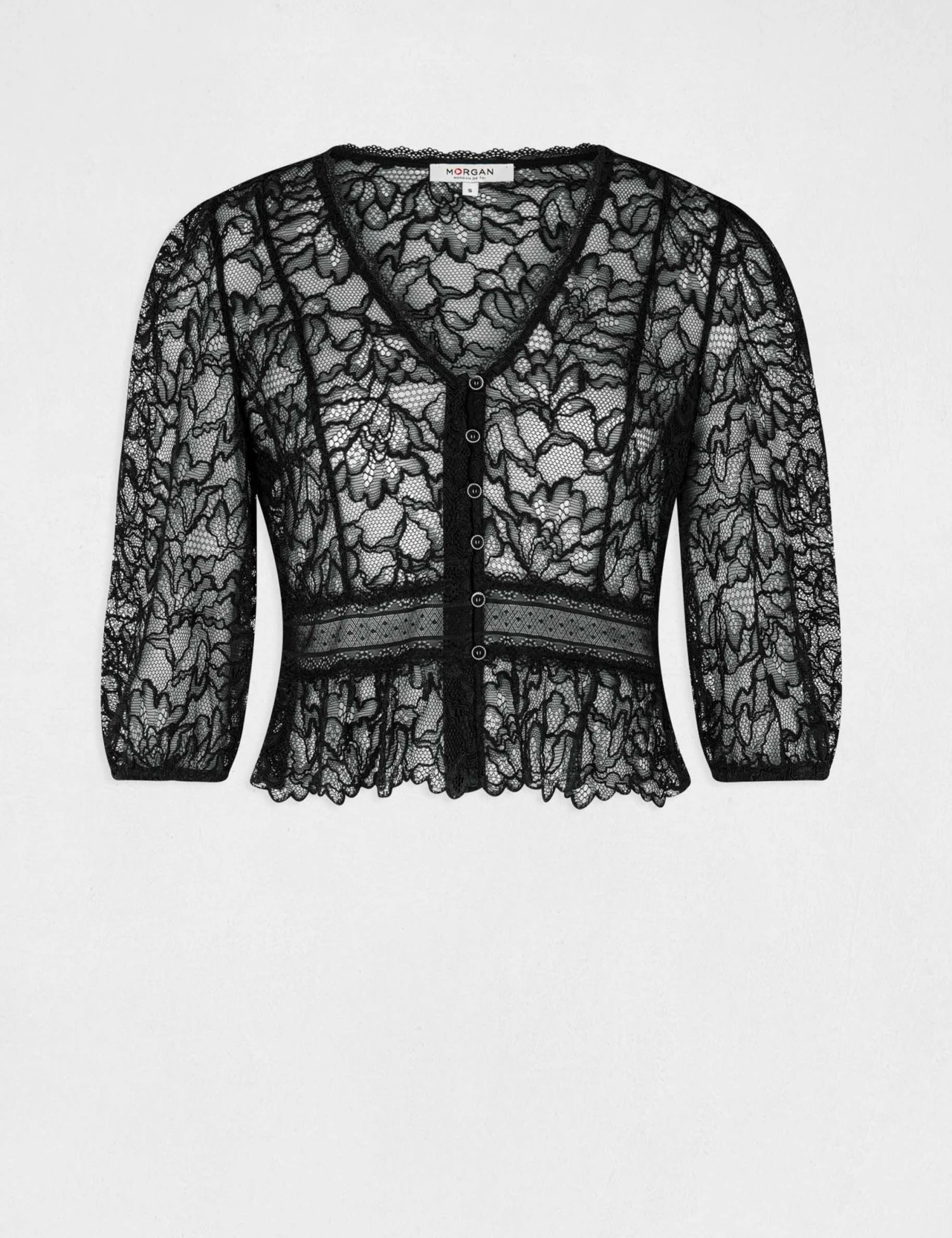 T-shirt Manches 3/4 En Dentelle Noir Femme