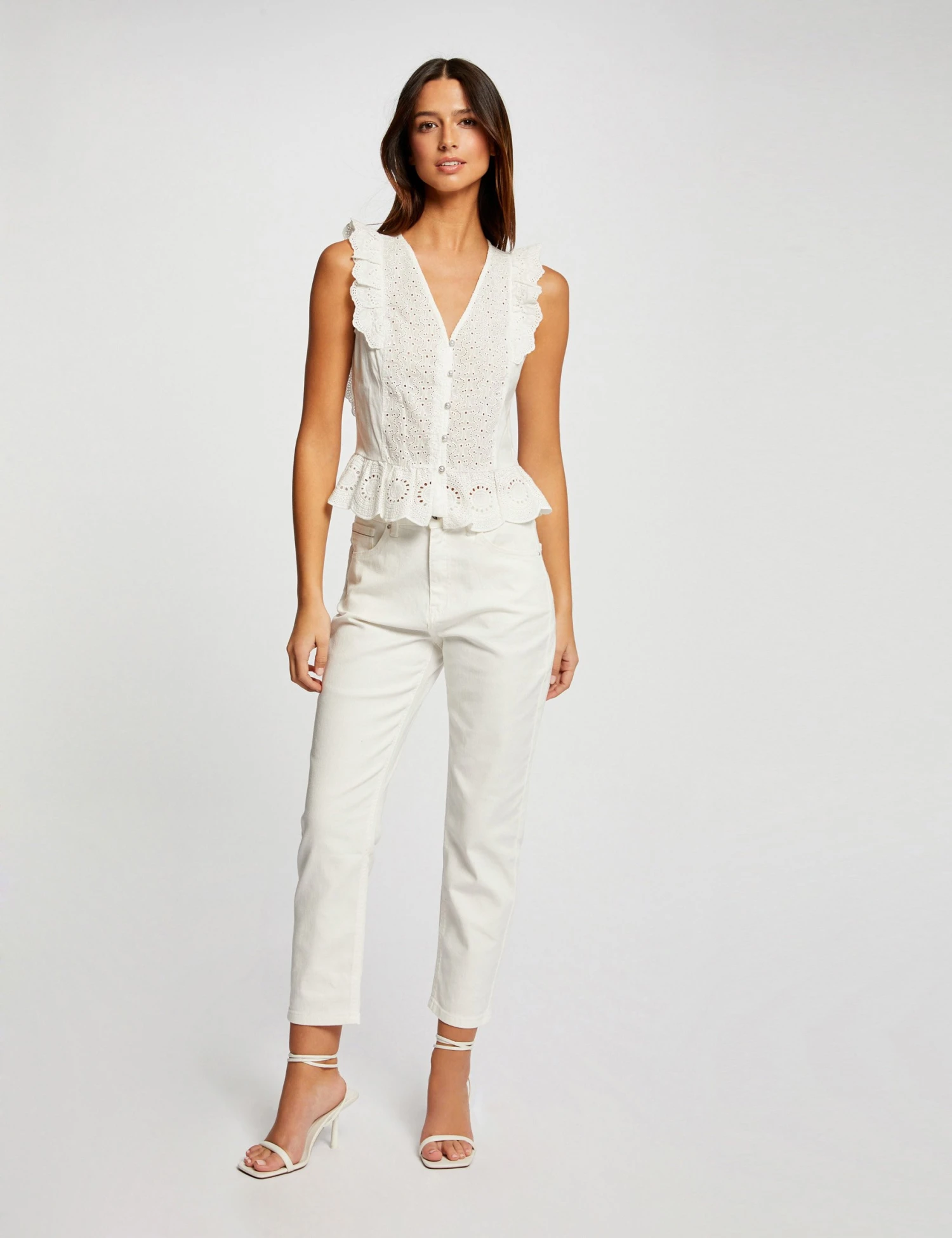 Empiècements avec volants aux manches, dans le dos et à la taille