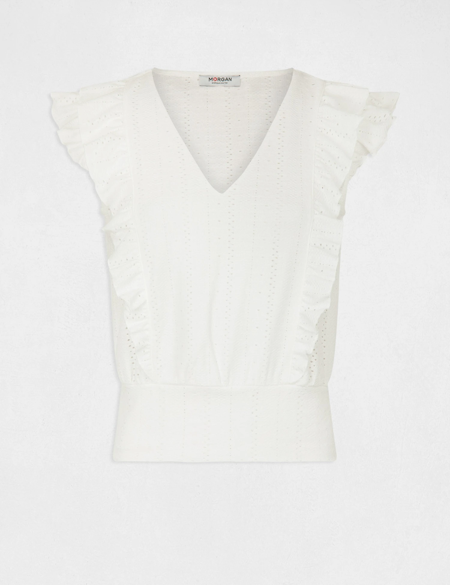 - T-shirt manches courtes brodé à volants