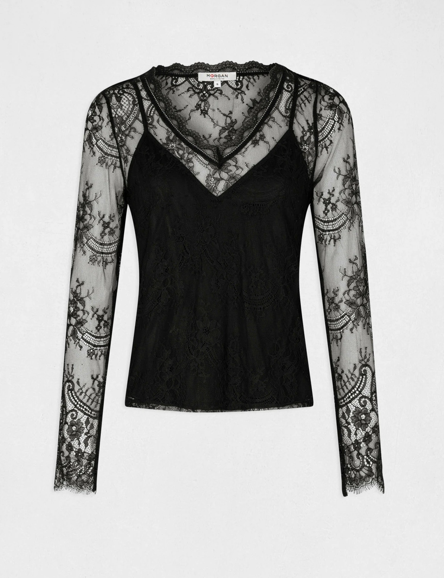 Empiècements dentelle avec jeu de transparence à l¿encolure, aux manches et dans le dos